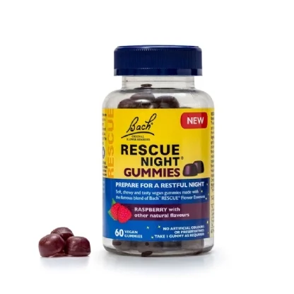 Cansado de noites mal dormidas que afetam seu bem-estar? O RESCUE Night Gummies é a solução natural para você ter o descanso que merece. Com um delicioso sabor de framboesa, essas gomas são feitas para acalmar a mente e te preparar para uma noite de sono tranquilo e restaurador.