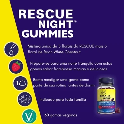 Tenha noites de sono reparadoras e dias mais produtivos. Adicione o RESCUE Night Gummies ao seu carrinho e sinta a diferença que a tranquilidade pode fazer na sua vida!